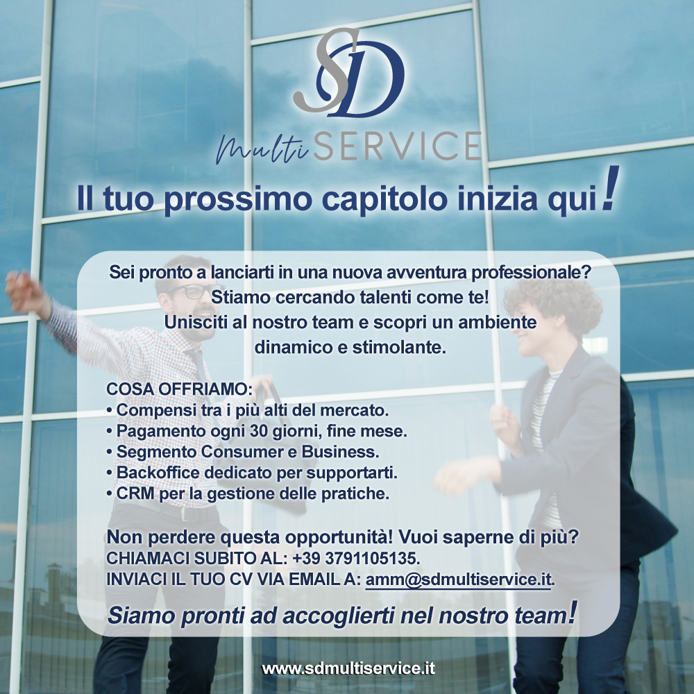 Hai la necessità di orientarti all’interno del mondo energetico, del fotovoltaico, della videosorveglianza, delle soluzioni assicurative o altro ancora? Non temere, noi della SD Multiservice abbiamo il servizio che fa per te!
